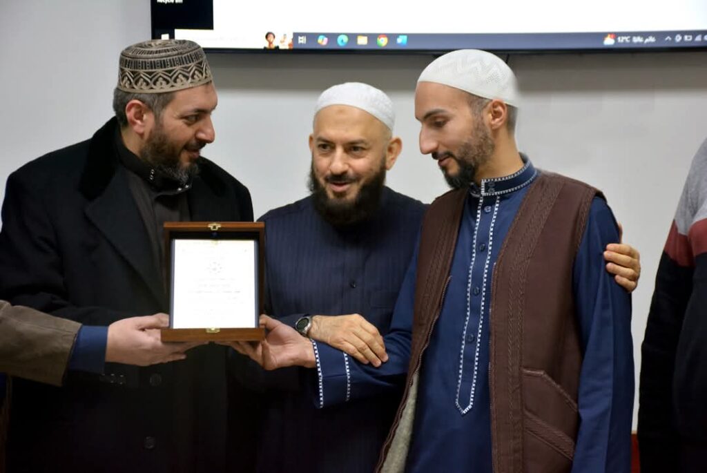 وفي ختام اللقاء، كرّم الشيخ حسن قاطرجي عددًا من الشخصيات العلمية تقديرًا لإنجازاتهم المتميزة، حيث قدّم دروعًا تكريمية لكل من: