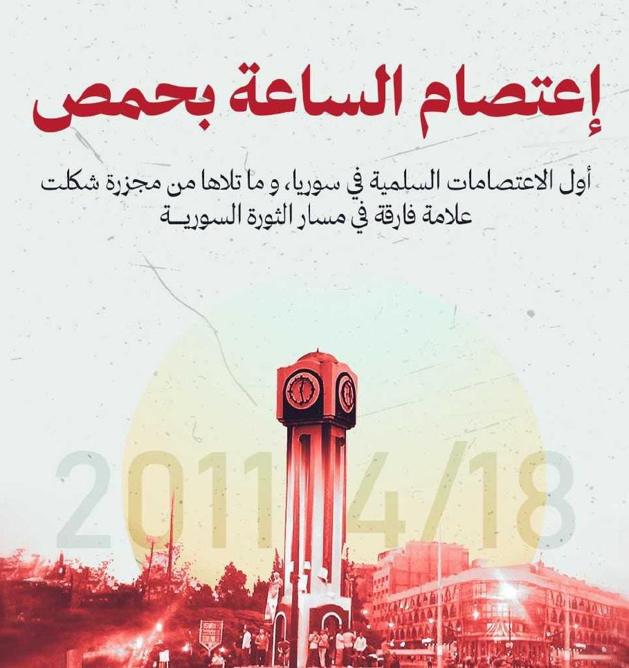 يوم الثامن عشر ليلة التاسع عشر من نيسان 2011، بعد تشييع شُهداء من مدينة حمص في مقبرة الكتيب في منتصف مدينة حمص، عقب صلاة الظهر وبقلب ملؤه الحقد والغضب على النظام السوري البائد، وانطلاقاً من حق الشعوب في تقرير المصير وحقّها في التظاهر السلمي، بدأ شباب ونساء ورجال ومشايخ مدينة حمص يتوافدون إلى ساحة ساعة حمص الجديدة تلبيةً لدعوى اعتصام مفتوح “اعتصام الساعة” قد دعت اليه تنسيقيات الثورة في ذلك الحين، ضد قوى الأمن السورية تعبيراً عن غضبهم للجرائم والأعمال الوحشية في قمع المُظاهرات السليمة ضمن مدينة حمص.