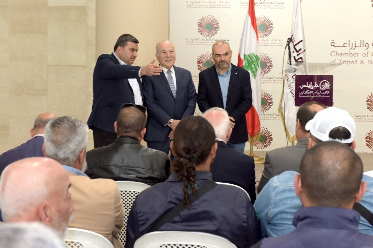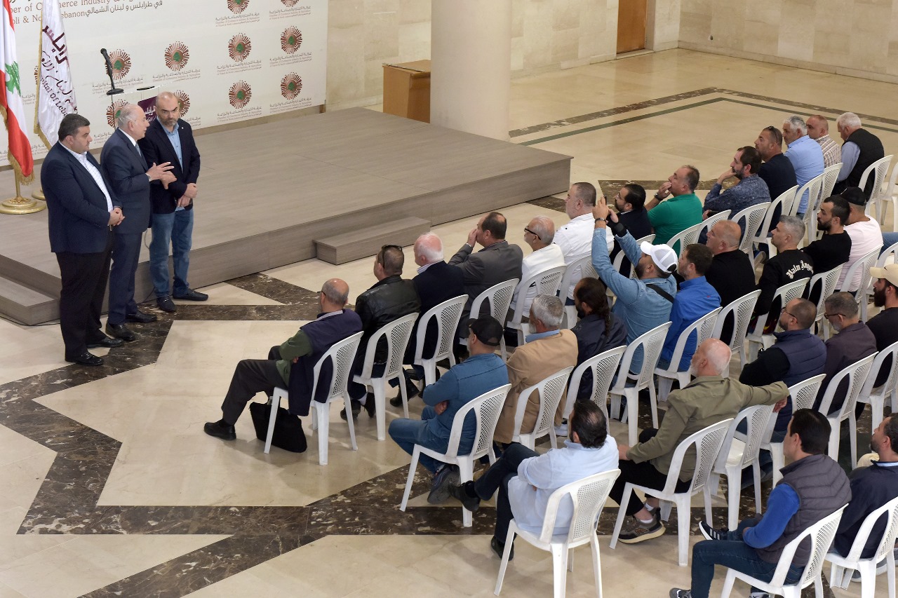 إستضاف رئيس غرفة التجارة والصناعة والزراعة في طرابلس والشمال توفيق دبوسي رئيس إتحاد نقابات العمال في الشمال شادي السيد ونائب رئيس إتحاد النقل البري محمد الخير ورؤساء النقابات ومجالسها التنفيذية في لقاء تكريمي لمناسبة عيد العمال وذلك في القاعة الكبرى في حرم الغرفة.