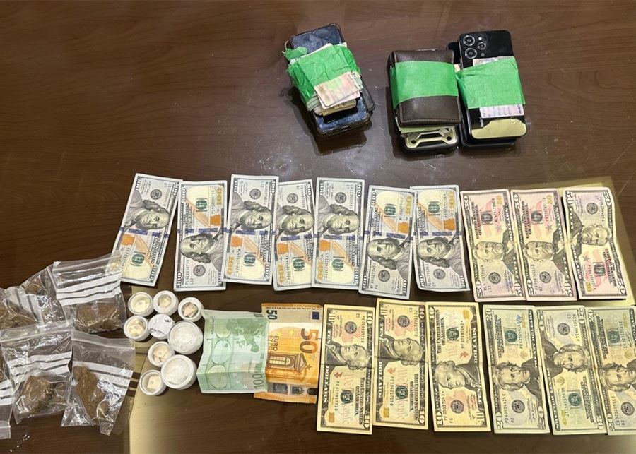 وبتفتيشهم والمركبة، عُثر على أربع علب بلاستيكية تحوي موادا مخدّرة، وجاهزة للترويج، إضافة إلى مبالغ مالية وهواتف خلوية.