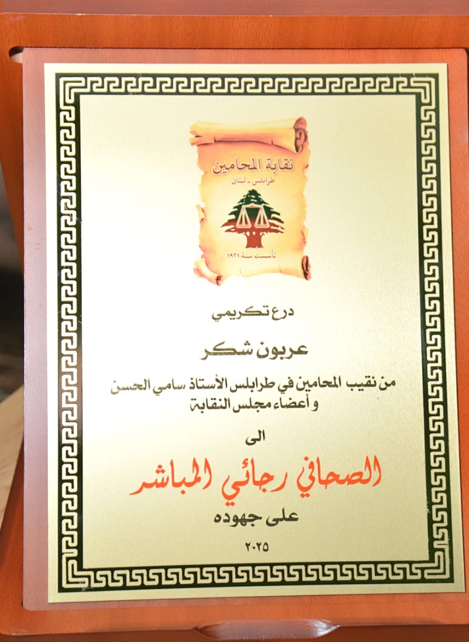 كرمت نقابة المحامين في طرابلس والشمال ممثلة بشخص النقيب وأعضاء مجلس النقابة، الصحافي رجائي رياض المباشر، وذلك في دار النقابة.