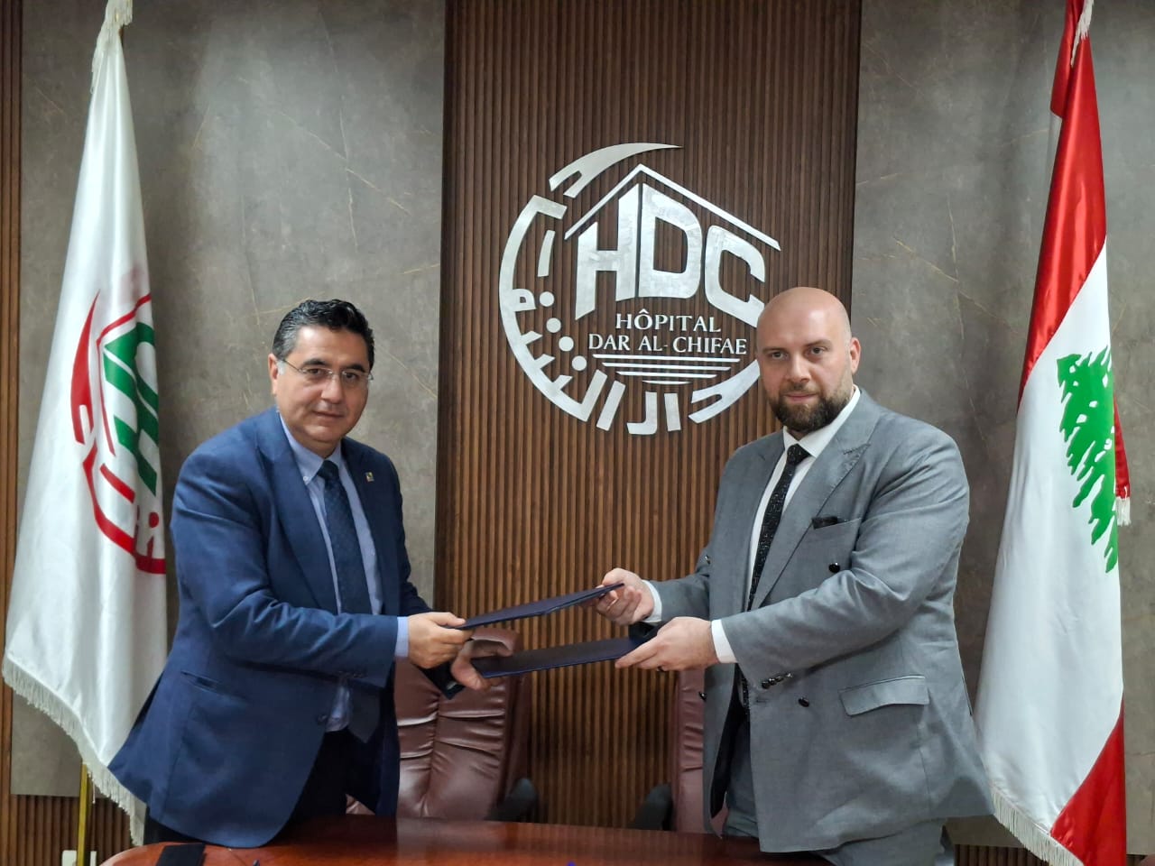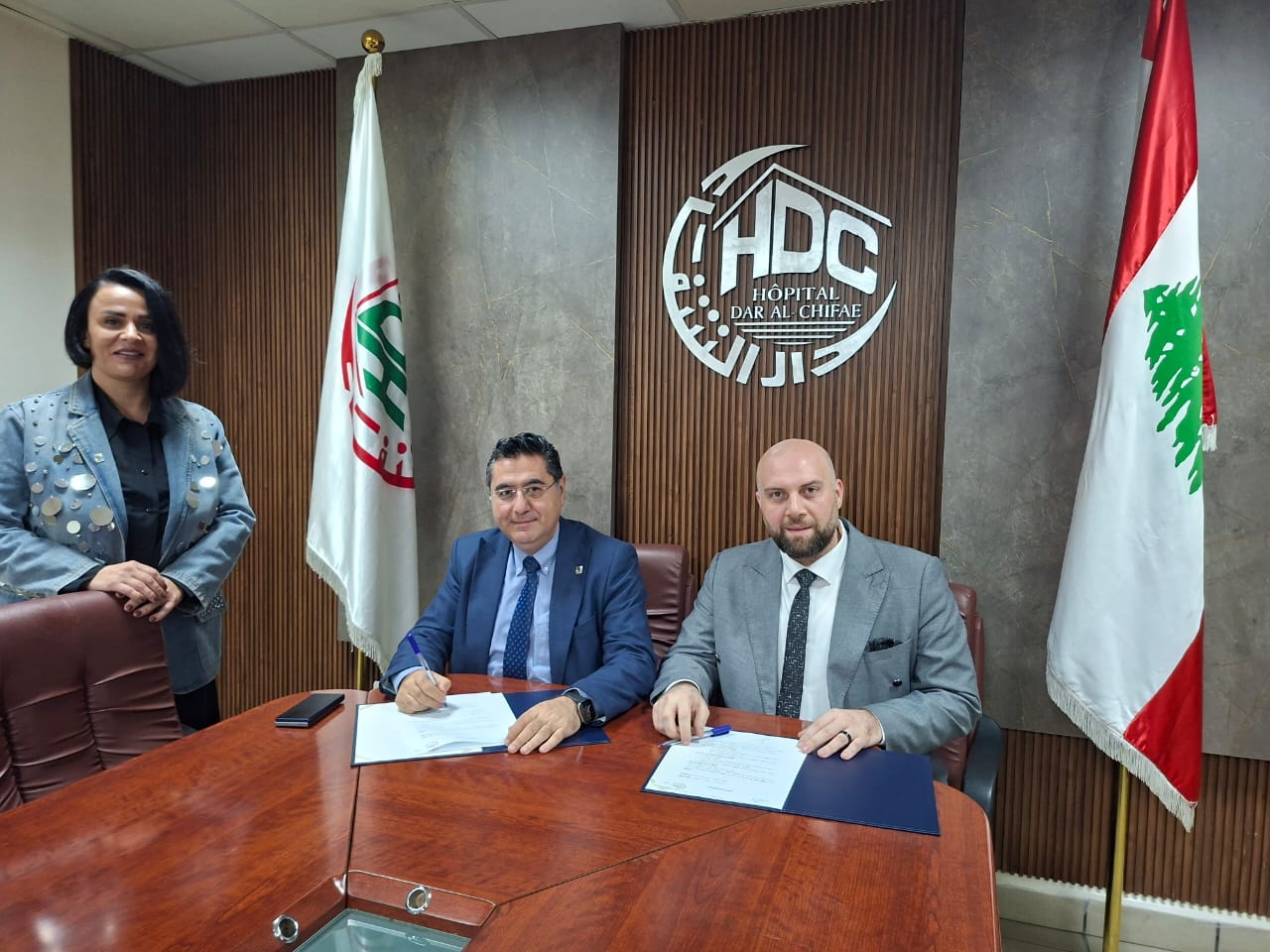 وجاء التوقيع خلال زيارة قام بها رئيس الاتحاد وائل زمرلي إلى المستشفى، حيث جرى الاطلاع على أقسامه وخدماته الطبية وعلى مشروع التوسعة المرتقب.