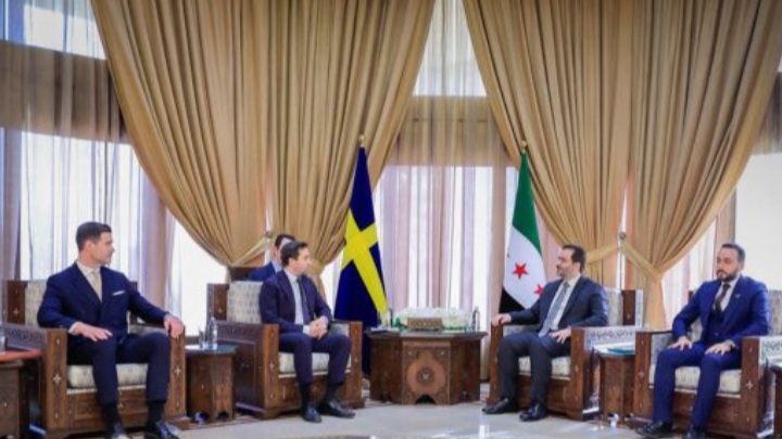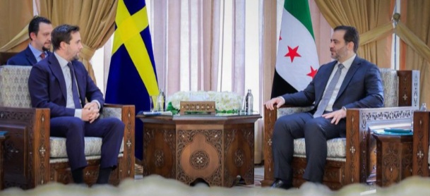 استقبل وزير الخارجية والمغتربين أسعد حسن الشيباني في دمشق وفداً سويدياً رفيع المستوى برئاسة وزير التعاون الإنمائي والتجارة الخارجية بنجامين دوسا ووزير الهجرة يوهان فورسيل.