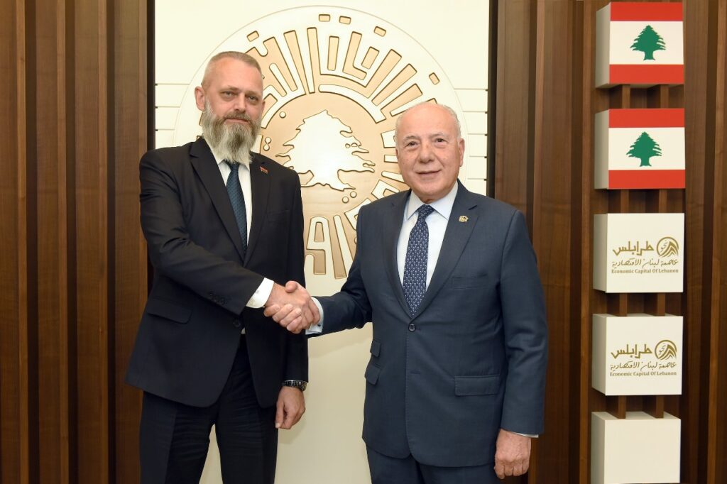 تناول رئيس غرفة التجارة والصناعة والزراعة في طرابلس والشمال توفيق دبوسي خلال لقائه سفير بيلاروسيا في لبنان يوري سلوكا “آفاق التعاون بين البلدين، وسبل تطوير الشراكات الإقتصادية والتجارية والاستثمارية بما يخدم المصالح الإقتصادية للجانبين ويعزز فرص الإستثمار في مختلف القطاعات الحيوية”.